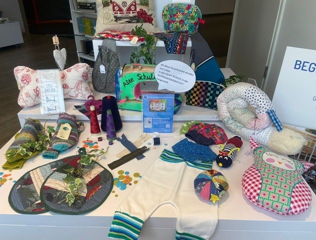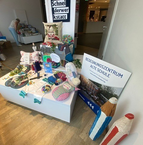 Seit ein paar Tagen gibt es in der Haspa am Tibarg eine Ausstellung der Schneiderwerkstatt. Unsere Ehrenamtlichen haben alles gegeben und gewähren allen Besucher/innen einen wunderschönen interessanten Einblick in unsere Arbeit.