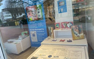 Seit ein paar Tagen gibt es in der Haspa am Tibarg eine Ausstellung der Schneiderwerkstatt. Unsere Ehrenamtlichen haben alles gegeben und gewähren allen Besucher/innen einen wunderschönen interessanten Einblick in unsere Arbeit.