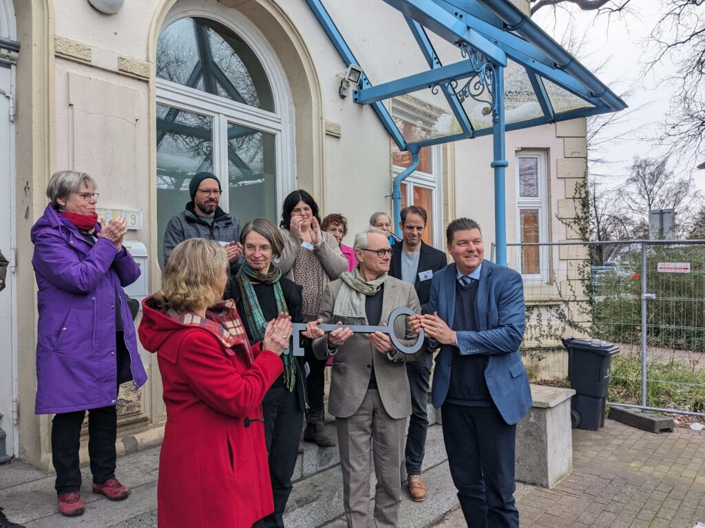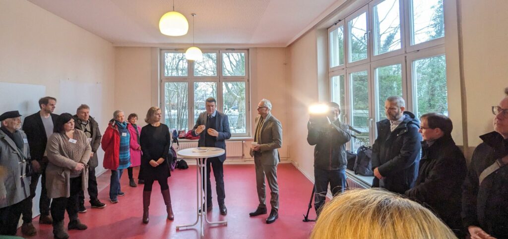 Der heutige Tag begann mit einer Pressekonferenz auf der der Finanzsenator Andreas Dressel sprach und im Anschluss symbolisch den Schlüssel übergab, den Maren Gottsmann von Wir für Niendorf stellvertretend für das neue Begegnungszentrum übernahm