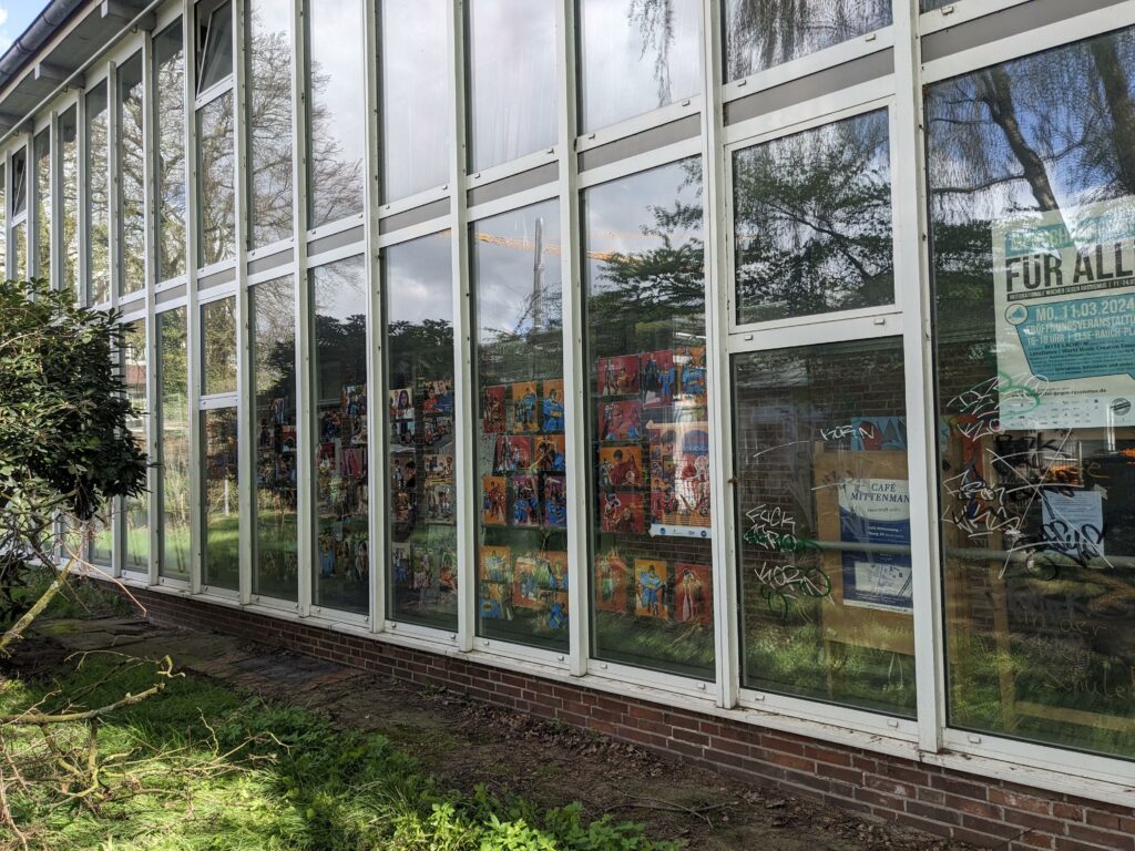 Die Ausstellung ist im Erdgeschoss und kann wenn die Alte Schule geschlossen ist auch von außen besucht werden. Einen Einblick gibt es auch bei Instagram auf dem Profil von Genety: https://www.instagram.com/genety.e.v/