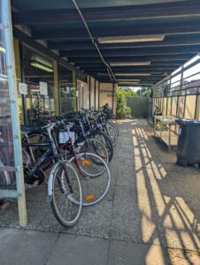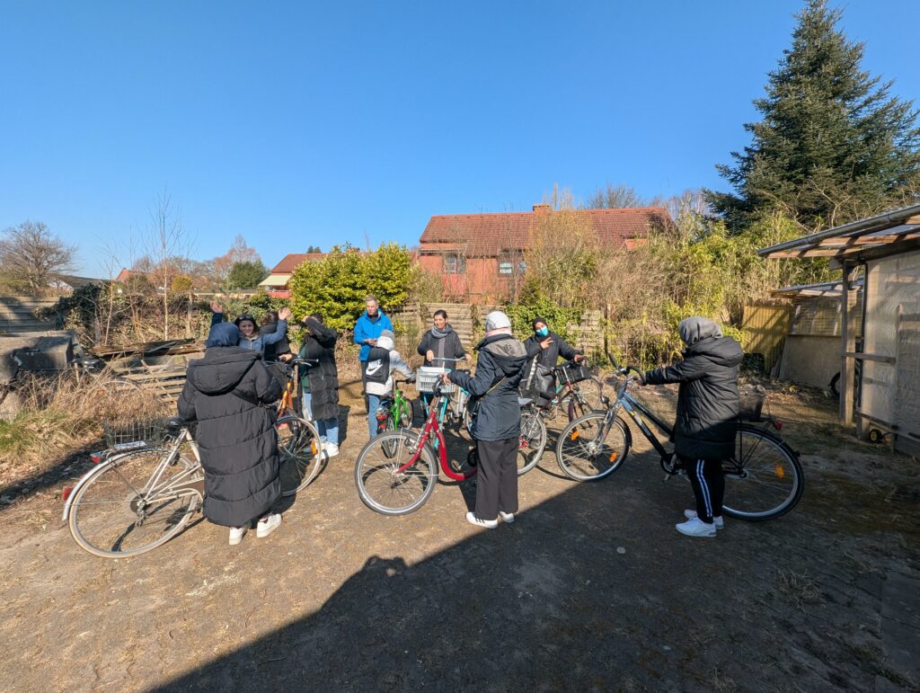 Neun Frauen lernten hier in den zwei Ferienwochen mit dem Fahrrad umzugehen. Heute, einen Tag vor Kursende, bekamen sie in der Fahrradwerkstatt von Wir für Niendorf jeweils ein Fahrrad, mit dem sie nun noch einen Tag gemeinsam üben und dann weiter in der Stadt fahren können.
