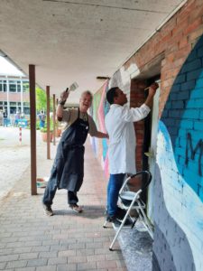 Organisiert von der Hamburger Kinder- und Jugendhilfe e.V. und gefördert durch das Bezirksamt Eimsbüttel gestaltete Michael Dietrich aus dem Atelier „KOOL“ gemeinsam mit Jugendlichen alle Außentüren neu. Viel Arbeit, die die Gruppe auch noch am Sonntag weiterführte. Nun freuen wir uns alle über tolle und einladende Türen, die alle Besucher*innen willkommen heißen.