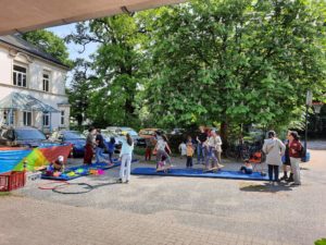 Kaum waren die Beete bepflanzt begann der Kindercircus, parallel zum Café Mittenmang, das wie jeden Samstag für Geflüchtete Neu-Niendorfer*innen offen stand. Das vom Bezirksamt Eimsbüttel geförderte Kindercircustraining findet bis zu den Sommerferien jeden Donnerstag (16:15 – 17:45 Uhr) statt und ist offen für alle Kinder ab 5 Jahren. Um Anmeldung unter: circus.nido@gmail.com wird gebeten.