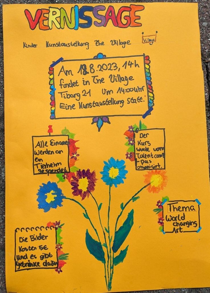 Aktuell findet wieder der talentCAMPus der Volkshochschule statt, an dem sich auch die Alte Schule beteiligt. Elf Kinder malen die ganze Woche zum Thema „World Changing Art“ gemeinsam im Village, dabei kommt ein Teil der Kinder von Familien, die die Alten Schule besuchen und ein Teil über die Plattform der Volkshochschule. Mittags kochen und Essen alle gemeinsam im Café Mittenmang in der Alten Schule.