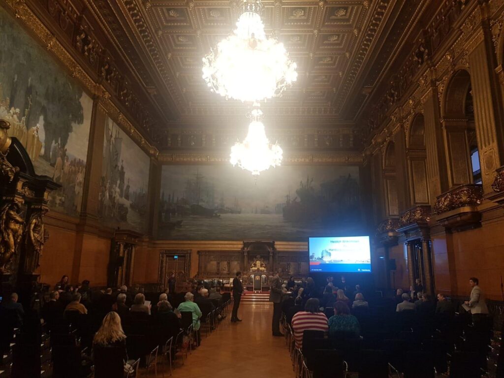 Nach einem musikalischen Einstieg und einem Grußwort des ersten Bürgermeisters bekamen die Projekte kurz die Möglichkeit im Gespräch mit Senatorin Katharina Fegebank ihre Arbeit darzustellen.