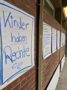 Vor Ort fand wie immer das samstägliche Café Mittenmang statt. Ergänzt wurde das Programm mit Aktivitäten zum Tag der Familie: auf dem Hof hatte die Elternschule einen Tisch aufgebaut mit Informationen und gab Heliumgefüllte Ballons aus. Parallel zum Café startete dann auch der Kinder-Mitmach-Circus und der ganze Hof war voller spielender Kinder und ihrer Eltern. Wer es ruhiger wollte, konnte vor dem Café eine Ausstellung zu Kinderrechten ansehen.